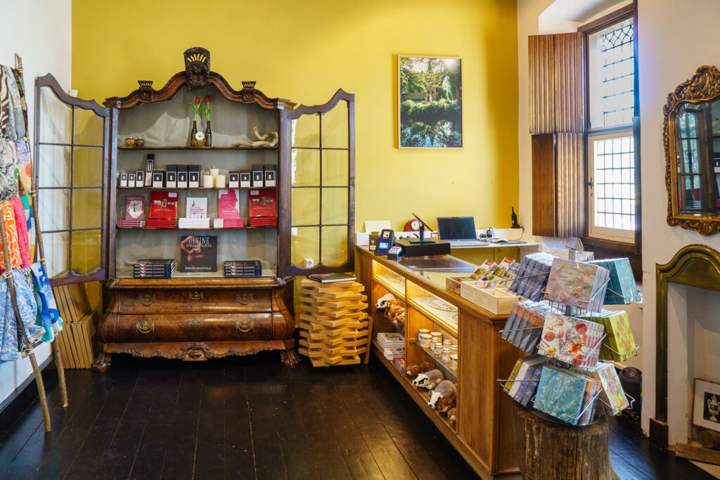 De winkel biedt een ruime keuze aan cadeautjes: zoals sieraden, shawls en boeken. Loop gerust onze winkel binnen, die zonder entreebewijs te bezoeken is. Laat u verrassen door het originele aanbod.